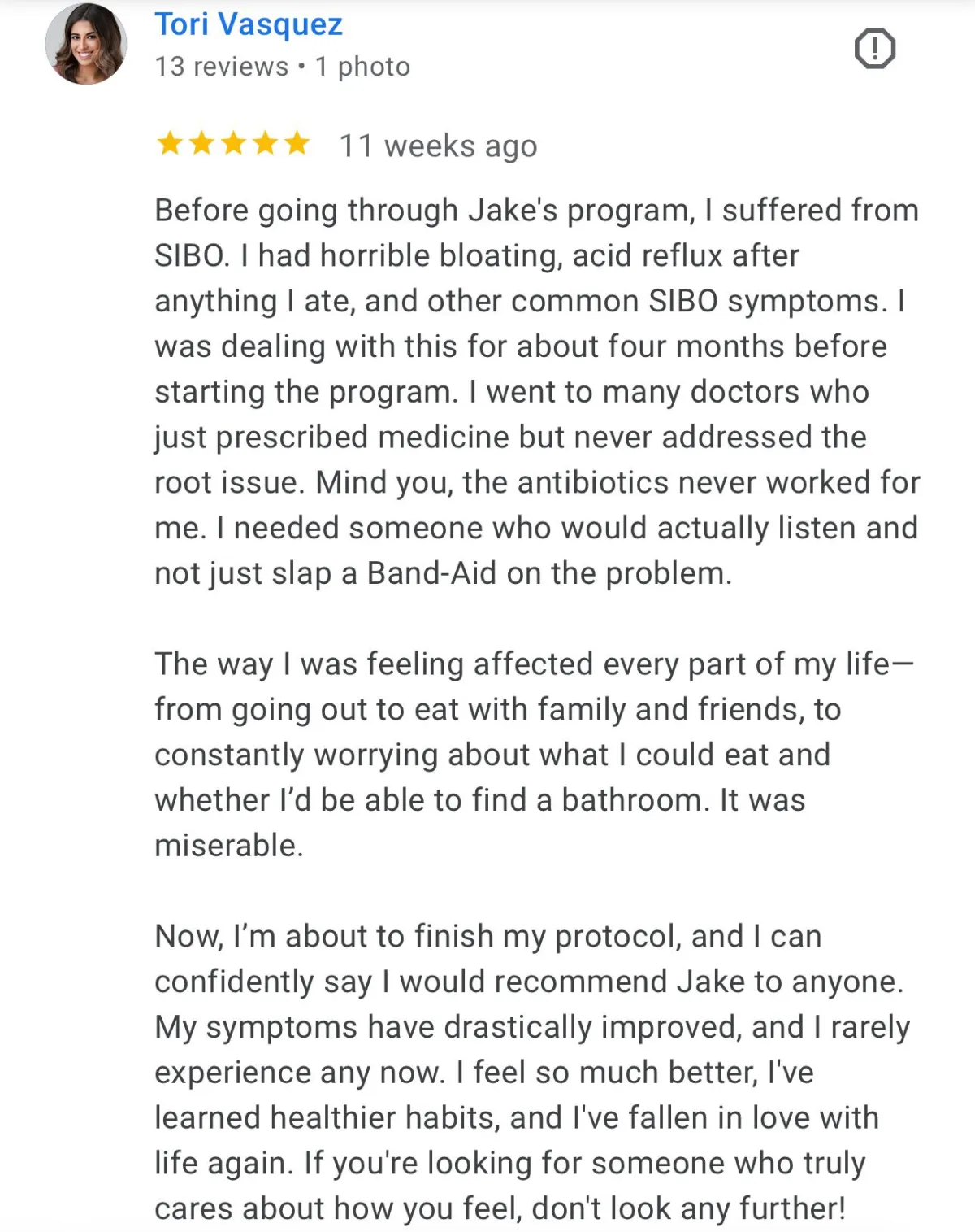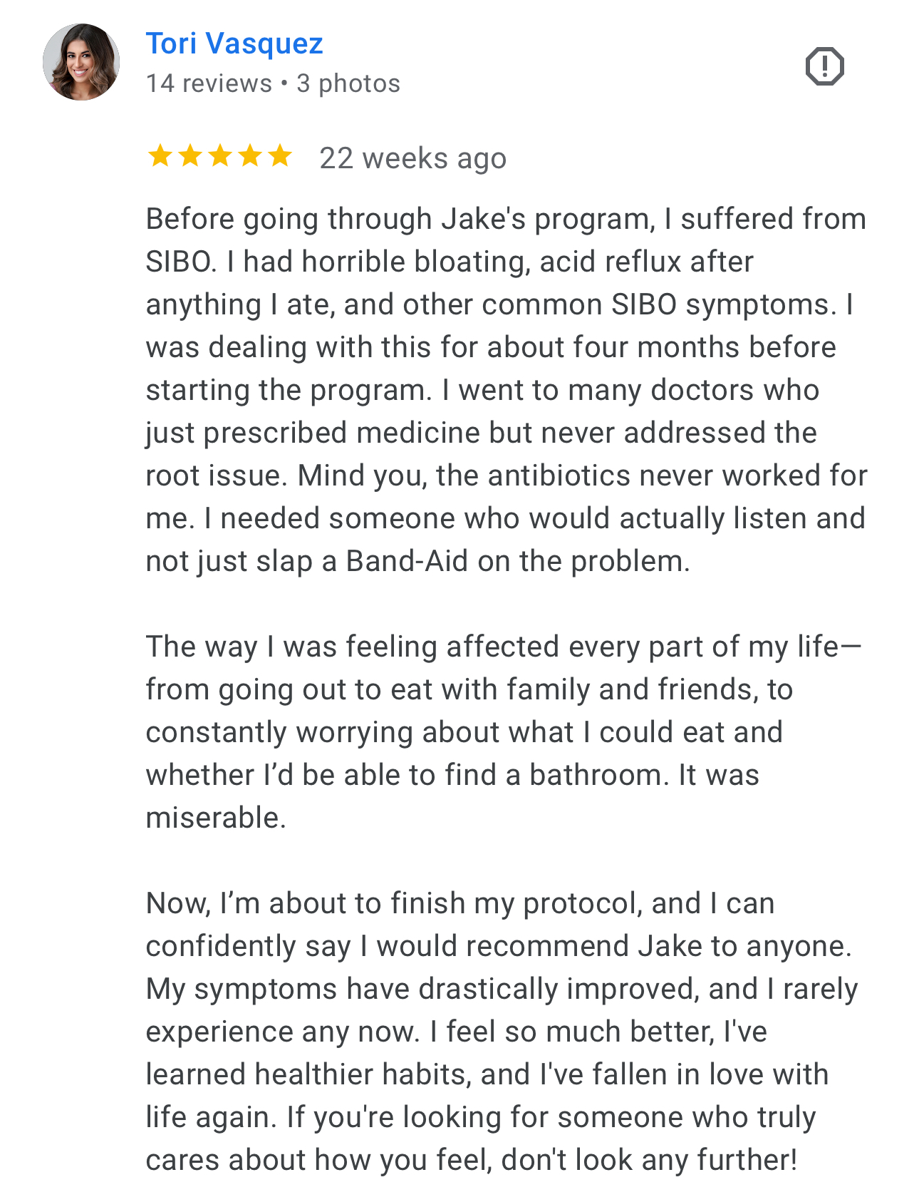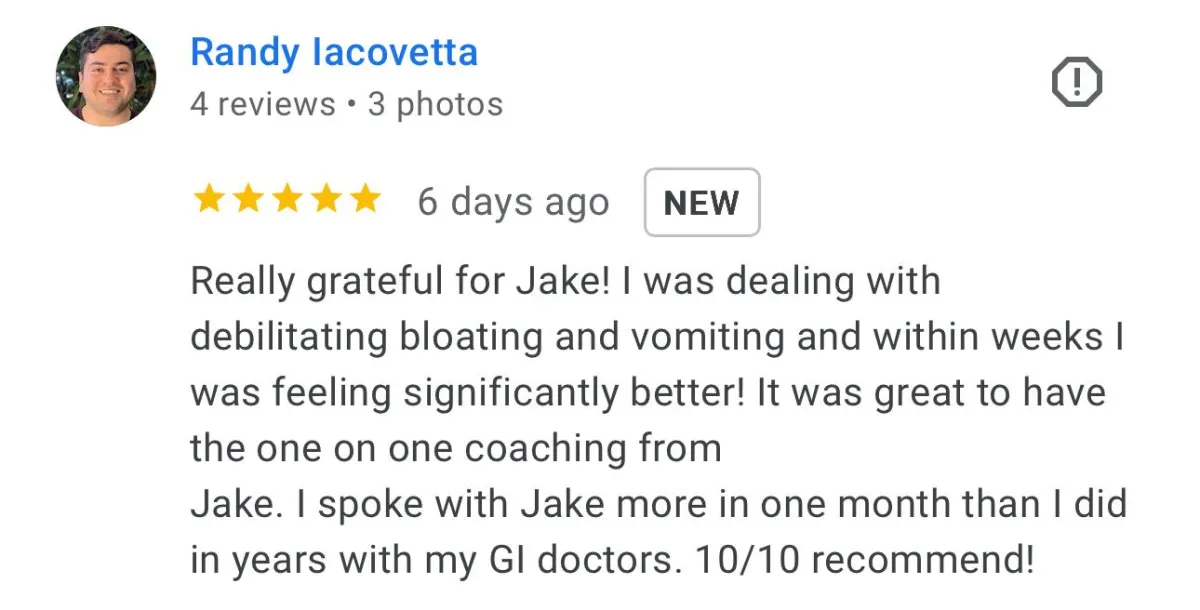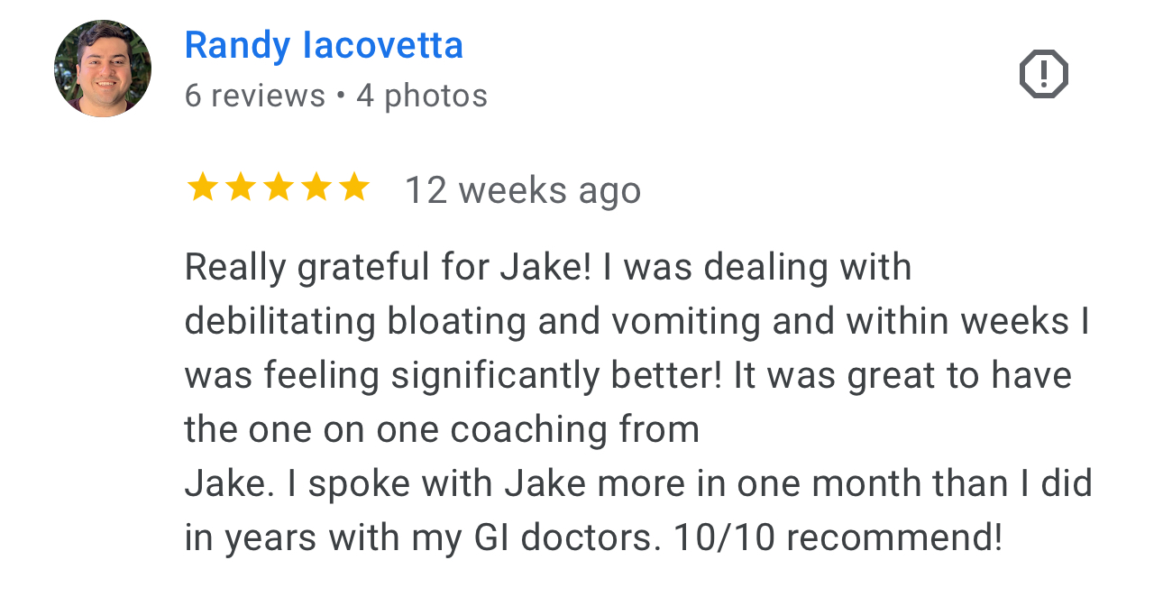 This program is designed to address every possible root cause of reflux, as well as any other chronic gut issue you're dealing with. Most people who join this program also experience chronic bloating or other symptoms throughout the day, and we have protocols designed to specifically address those issues.