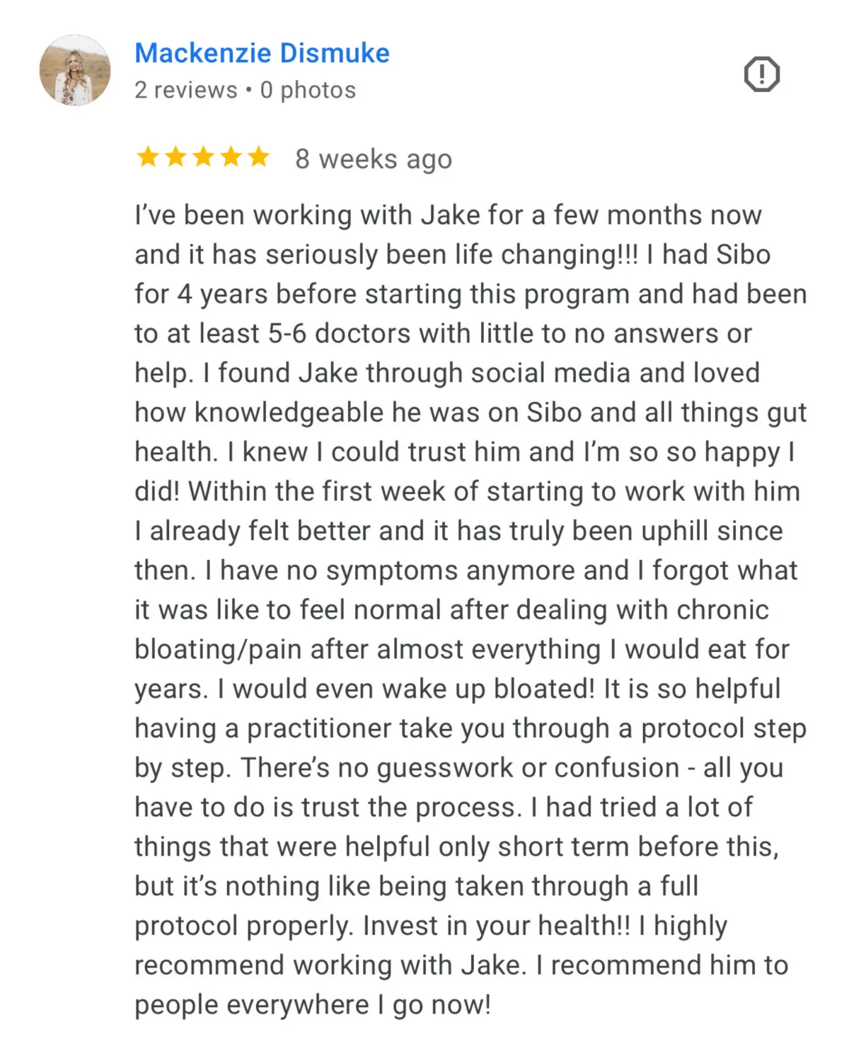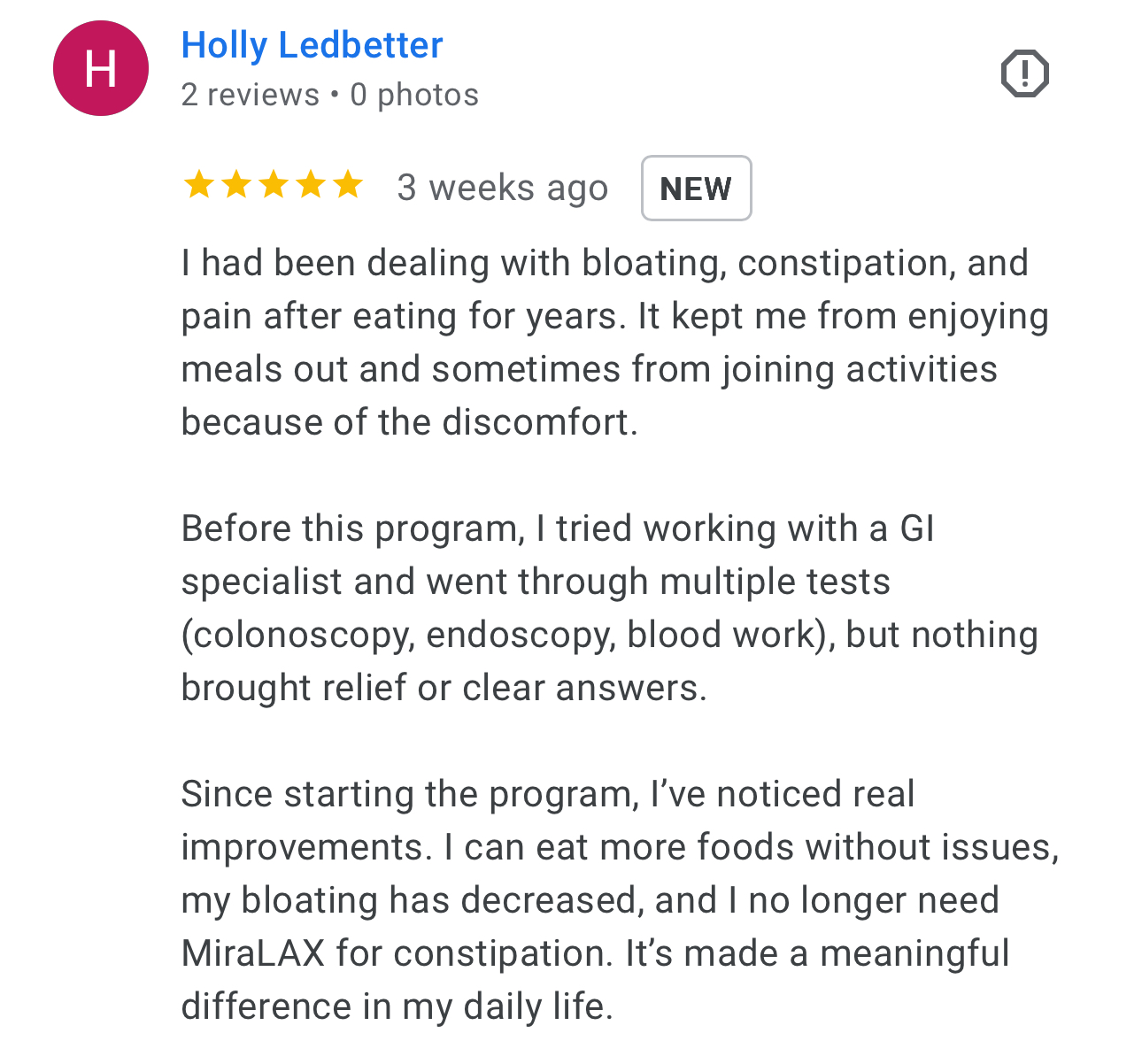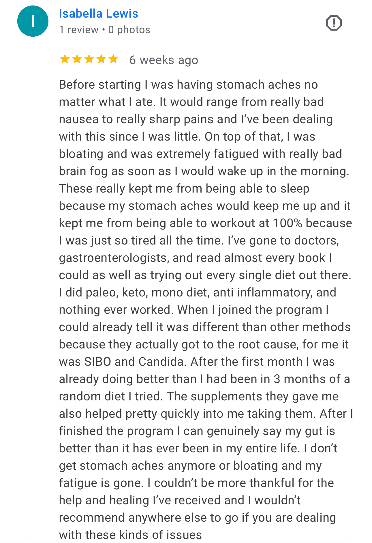 This program is designed to address every possible root cause of reflux, as well as any other chronic gut issue you're dealing with. Most people who join this program also experience chronic bloating or other symptoms throughout the day, and we have protocols designed to specifically address those issues.
