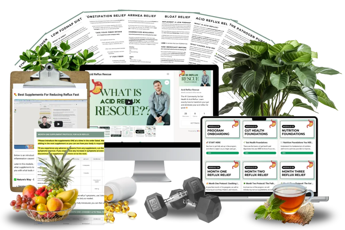Acid Reflux Rescue™ is a practical, step-by-step program for people who are tired of living on edge after every meal, exhausted from trial-and-error diets, overwhelmed by endless supplement stacks, and still left wondering why nothing’s actually working.